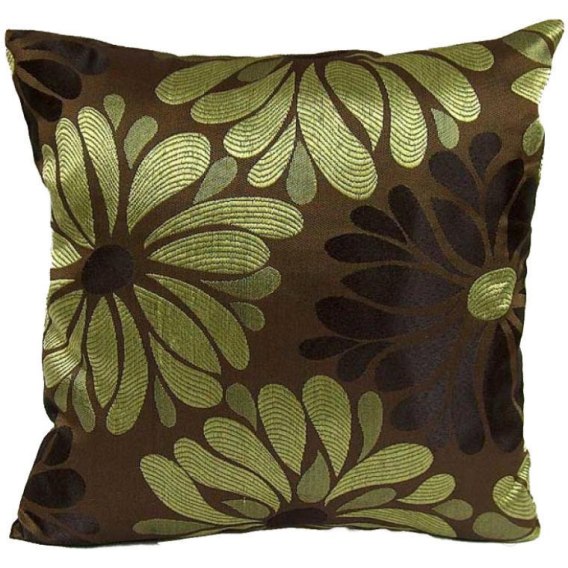 Poduszka dekoracyjna brązowa z zielonym wzorem kwiatowym 40x40 cm (bez wkładu)