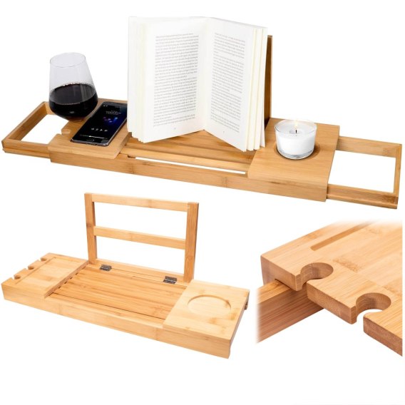 ✅Wysuwana półka na wannę z bambusa