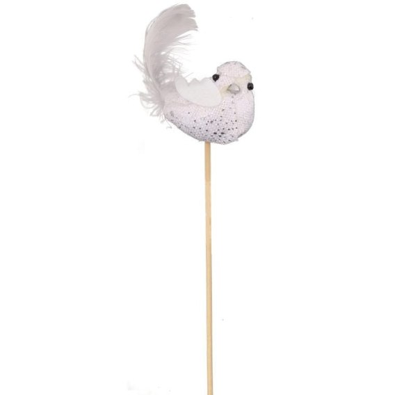 Ptaszek na piku z piórkami w kolorze białym to wyjątkowa dekoracja, która wprowadzi do Twojego wnętrza elegancję i lekkość. Wykonany z najwyższej jakości materiałów, ten uroczy ptaszek ozdobiony jest srebrnymi cekinami, które dodają mu blasku i wyjątkowego charakteru.