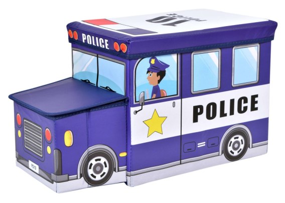 Posiada dwa schowki, które umożliwiają segregację zabawek. Jeden pojemnik ma uchylaną pokrywę, drugi większy zdejmowaną.
