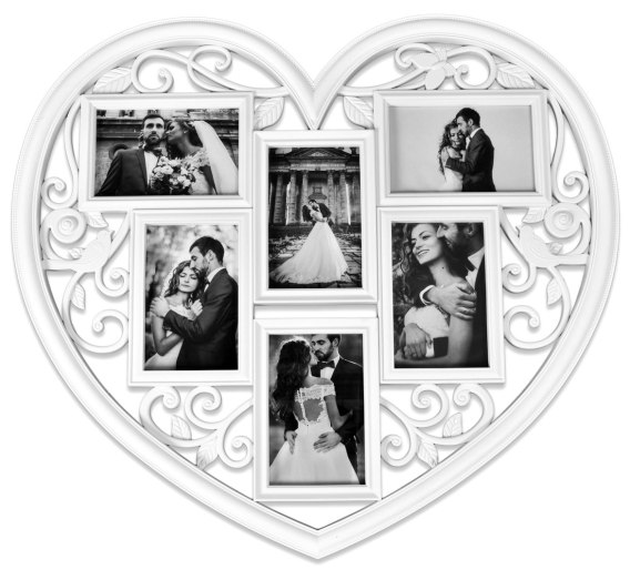 Ramka na zdjęcia BREVA serce 6 zdjęć biała 58 cm