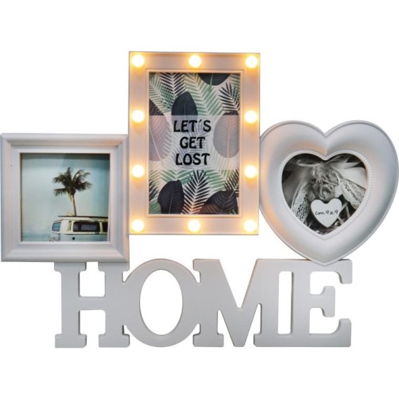 Ramka na zdjęcia HOME z białego plastiku z oświetleniem LED