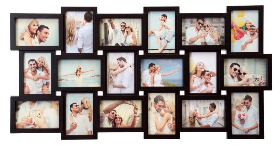 Ramka ma 18 miejsc na zdjęcia o wymiarze 10x15 cm.
