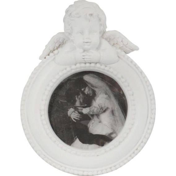 Ramka na zdjęcie okrągła z aniołkiem biała 9x7 cm
