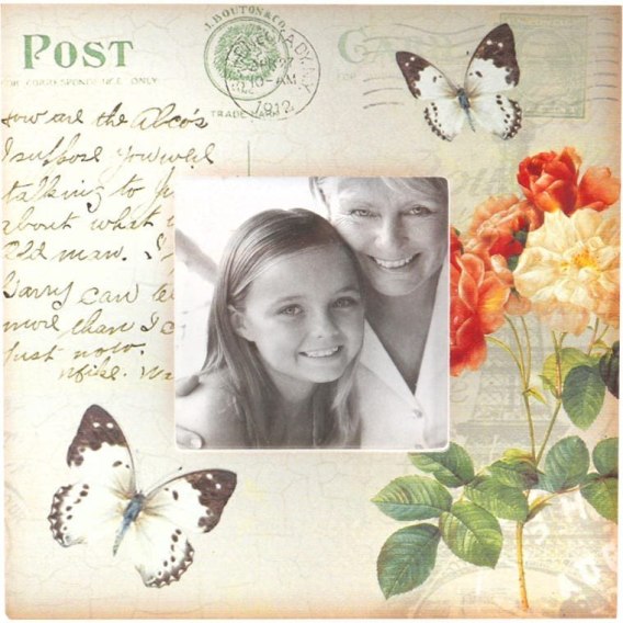 Ramka na zdjęcie stojąca kremowa z kwiatami i motylkami 14,5 x 14,5 cm