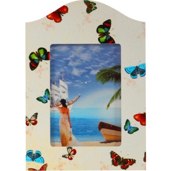 Ramka na zdjęcie stojąca kremowa z motylkami