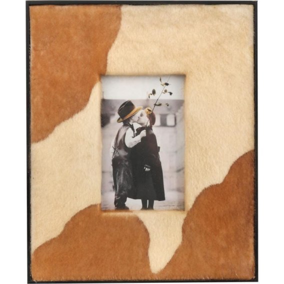 Ramka na zdjęcie zdobiona skórą kremowo-brązowa 30x25 cm