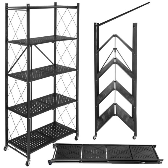 Regał składany Gestel to idealne rozwiązanie dla każdego, kto ceni funkcjonalność i mobilność. Dzięki pięciu przestronnym półkom, solidnej stalowej konstrukcji i mobilnym kółkom, regał doskonale sprawdzi się zarówno w domu, jak i w biurze. Łatwy w składaniu, bez potrzeby montażu, oszczędza Twój czas i przestrzeń. Jego uniwersalny czarny kolor wpasuje się w każde wnętrze, a możliwość szybkiego złożenia sprawia, że przechowywanie jest jeszcze prostsze.