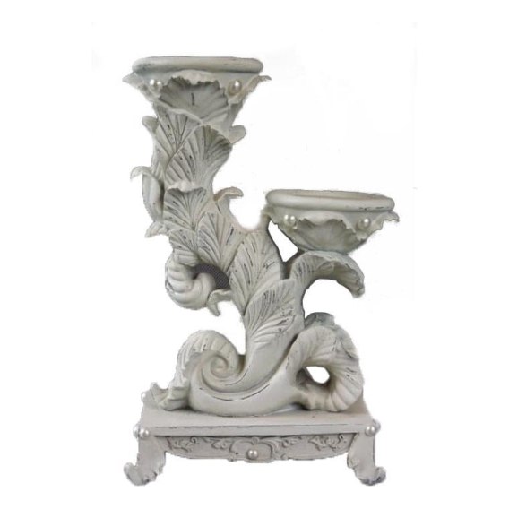 Romantyczny Świecznik Stojący z Perłami i Motywem Roślinnym 27x17 cm