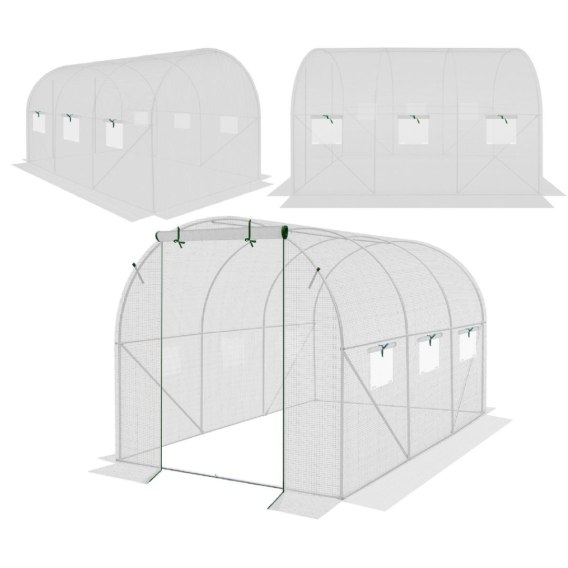 Szklarnia posiada 6 okien z moskitierami i zasłonkami z folii, które chronią przed nadmiarem wilgoci zapewniając jednocześnie optymalny przepływ powietrza i odpowiedni dostęp do światła. Posiada szerokie na 120 cm drzwi zamykane na zamek, które pozwolą wygodnie wychodzić lub wchodzić do środka.