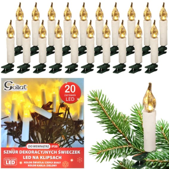 SZNUR DEKORACYJNYCH ŚWIECZEK NA KLIPSACH LAMPKI PRL 20 LED CIEPŁY BIAŁY