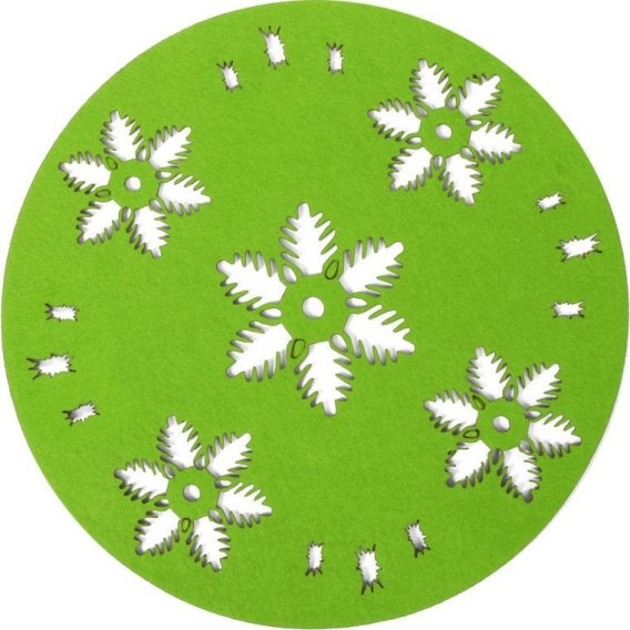 Serweta filcowa okrągła w płatki śniegu w kolorze zielonym
