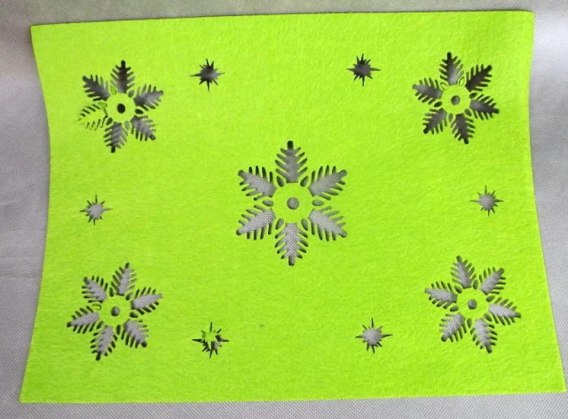 Serweta filcowa prostokątna w płatki śniegu w kolorze zielonym