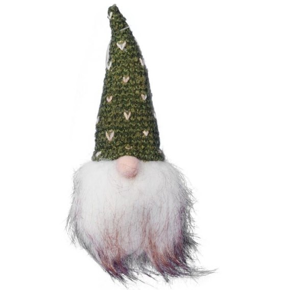 Skrzat Bożonarodzeniowy z Zieloną Czapą i Brodą - Dekoracja Świąteczna 20 cm