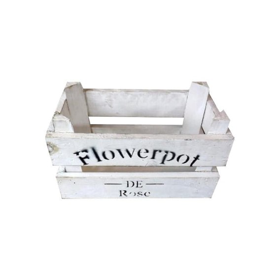 Skrzynka Drewniana Biała z Czarnym Nadrukiem Średniej Wielkości 23,5x13x14 cm