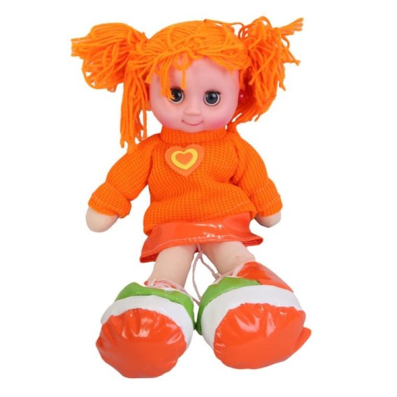 Lalka przytulanka w pomarańczowym ubranku to wspaniała towarzyszka zabaw dla każdego dziecka. Ubrana w kolorowe, miękkie ciuszki oraz duże, lateksowe buty, zachwyca nie tylko wyglądem, ale i funkcjonalnością. Po naciśnięciu serduszka, lalka zaczyna śpiewać, a jej kolczyki w uszach rozbłyskują pięknym światłem, co dodatkowo potęguje radość z zabawy.