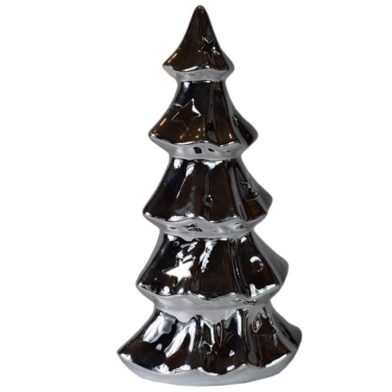 Srebrny Lampion Ceramiczny w Kształcie Choinki na Świecę Tealight