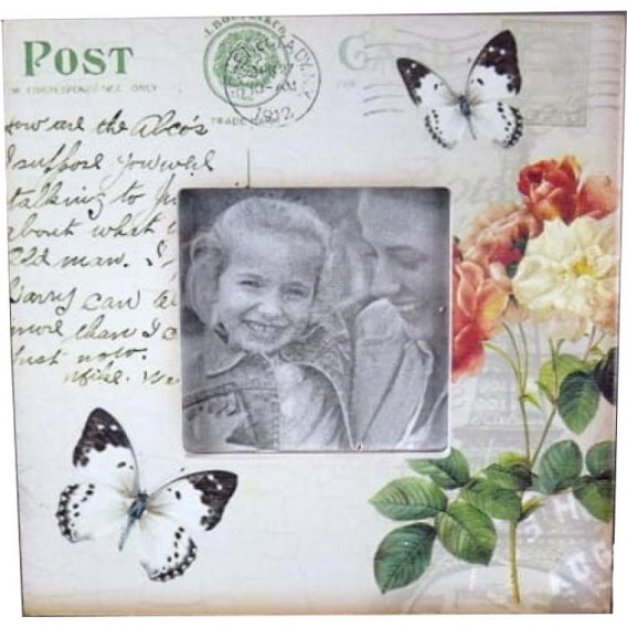 Stojąca ramka na zdjęcie z motywem kwiatowym i motylami 14,5x14,5cm