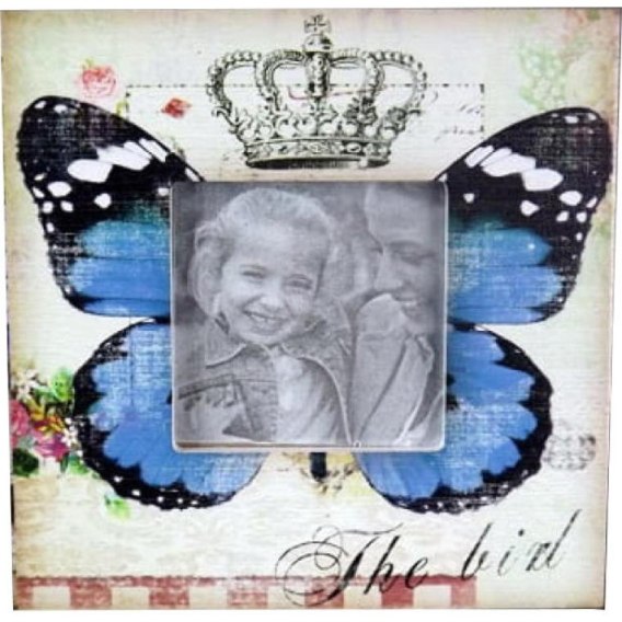 Stojąca ramka na zdjęcie z motywem kwiatowym i motylem 14,5x14,5cm
