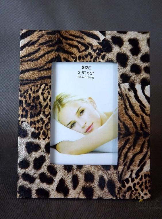 Stojąca ramka na zdjęcie z motywem pantery 19.5x15 cm w kolorze brązowo-kremowym