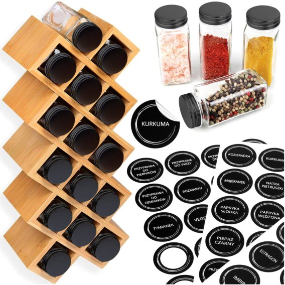 Stojak bambusowy na przyprawy KOCHEN 18 słoików naklejki