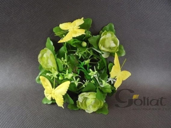 Stroik na świecę Zielony Ogród z żółtymi motylkami, średnica 8cm, Wysokość 15cm