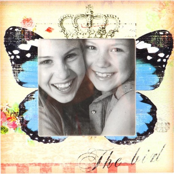 Stylowa Ramka na Zdjęcie z Motywem Motyla i Efektem Postarzania, Kremowa, 16x16 cm