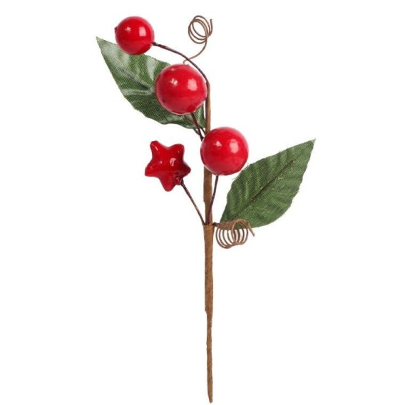 Świąteczna Dekoracja Jarzębina Pik 18 cm Zielono-Czerwona