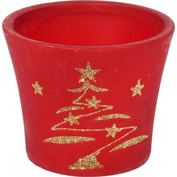 Świąteczna osłonka z ceramiki czerwona z choinką 15 cm IV