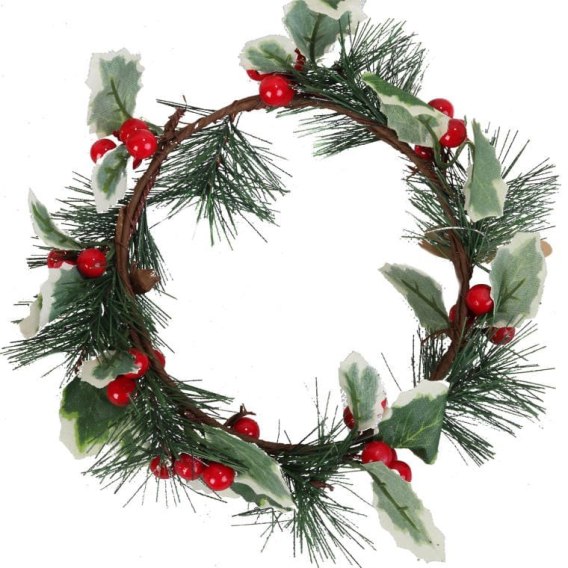 Świąteczny Wianek Dekoracyjny z Jarzębiny i Gałązkami Świerku 20 cm