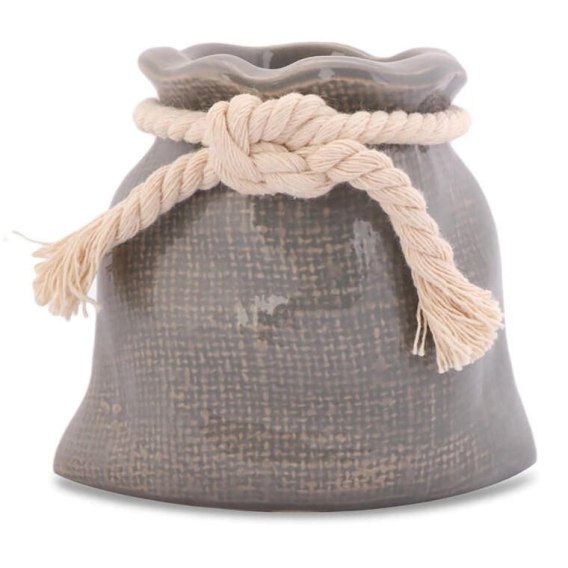 Świecznik Ceramiczny Sakiewka w Kolorze Szarym z Sznurkiem