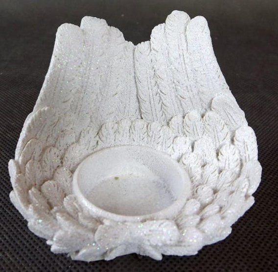 Świecznik Tealight z Białymi Opalizującymi Skrzydłami z Polirezyny