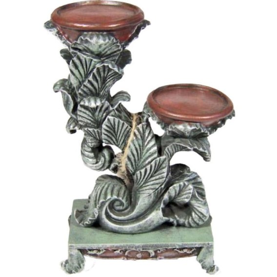 Świecznik stojący w kolorze brązowo-srebrnym z perłami 27x17 cm
