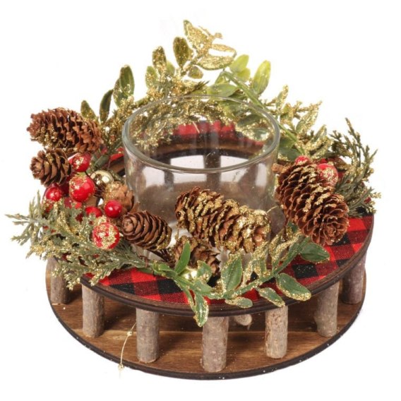 Świecznik z naturalnymi elementami dekoracyjnymi i szklanym pojemnikiem, 24 cm