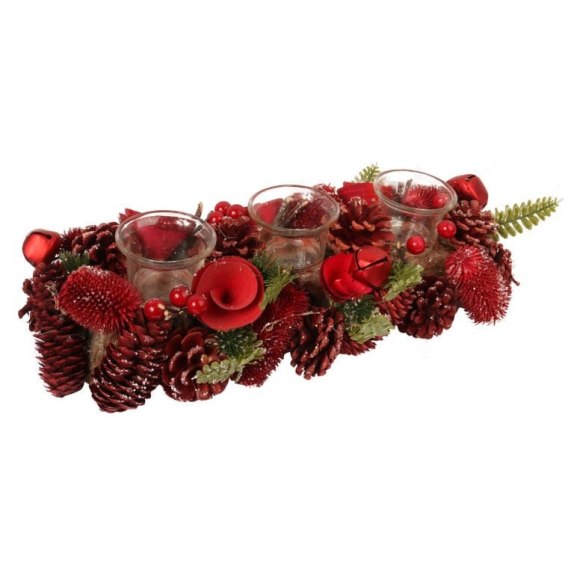 Świecznik na 3 świeczki to elegancki dodatek, który wprowadzi ciepły i przytulny nastrój do każdego wnętrza. Wykonany z naturalnych materiałów, takich jak szyszki i drewno, idealnie wpisuje się w trend ekologiczny oraz rustykalny.