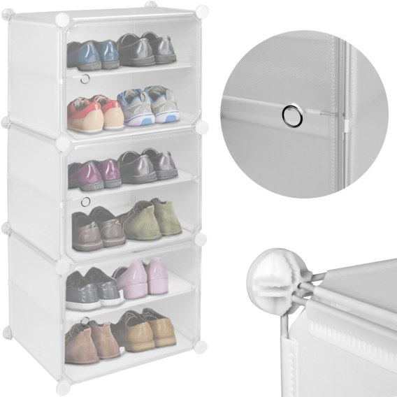 Szafka Pola pozwoli Ci zachować porządek z Twoim obuwiem. Chroni zawartość komór przed kurzem, jest wodoodporna i łatwa w utrzymaniu w czystości. Niewielkie rozmiary i modułowa konstrukcja sprawia, że model doskonale nada się jako uzupełnienie garderoby. Każda komora posiada dwie półki, w których bez problemu zmieścisz obuwie czy garderobiane dodatki. Jeśli chcesz mieć większą komorę, po prostu nie montuj półki. Wszystko zależy od Twojej wyobraźni. Przezroczyste okienka ułatwiają identyfikację obuwia w poszczególnych komorach. Drzwi w szafce można montować lewostronnie i prawostronnie. Każda z półek wykonana jest z metalowego stelażu i wodoodpornego materiału z przykuwającym uwagę wzorem. Montaż szafki jest łatwy i zajmuje niewiele czasu. Wystarczy połączyć poszczególne półki łącznikami z tworzywa ABS.