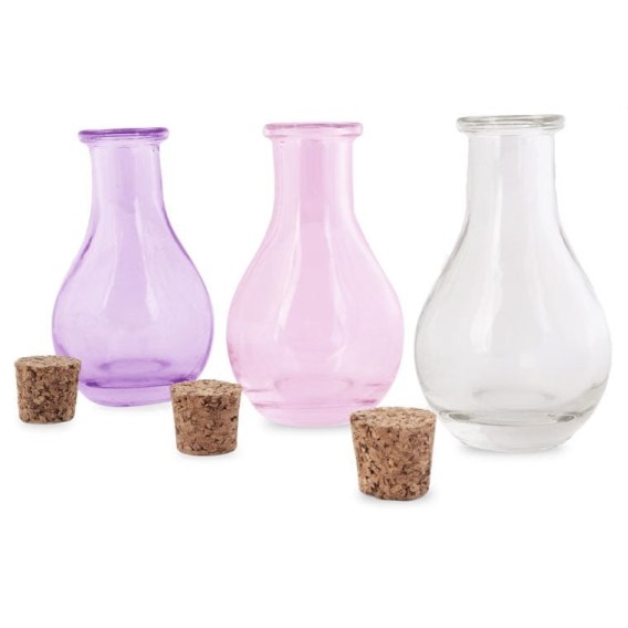 Szklane buteleczki dekoracyjne - mini wazoniki/kontenerki na koraliki, zestaw 3 sztuk.