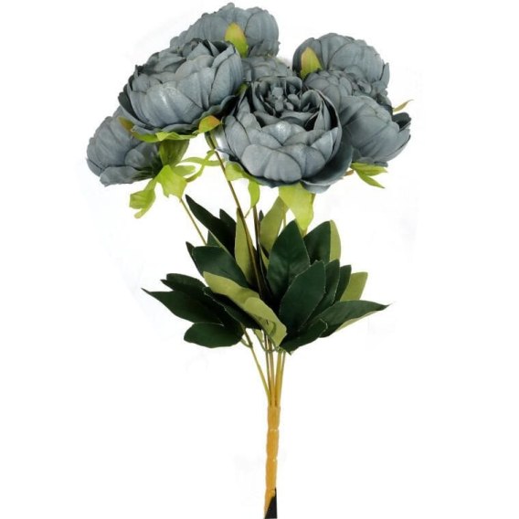 Sztuczne Piwonie w Kolorze Szaro niebieskim - Bukiet 7 Sztuk, 48 cm