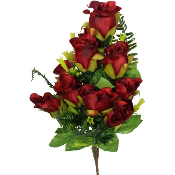 Kwiaty sztuczne - bukiet 10 róż w intensywnym czerwonym kolorze to doskonały wybór dla wszystkich, którzy pragną wprowadzić do swojego wnętrza odrobinę elegancji i stylu. Wykonane z materiałów najwyższej jakości, te realistyczne sztuczne róże wyglądają jak żywe kwiaty, co sprawia, że stanowią idealną dekorację zarówno na co dzień, jak i na specjalne okazje. Dzięki długości 40 cm bukiet perfekcyjnie wpasuje się w różnorodne aranżacje, od dekoracji stołów po wazonowe kompozycje, tworząc przytulną i ciepłą atmosferę. Jako samodzielna ozdoba lub część większych zestawów kwiatowych, ten piękny bukiet czerwonych róż z pewnością przyciągnie wzrok i doda charakteru każdemu pomieszczeniu. Wybierając ten bukiet, inwestujesz w trwałą i efektowną dekorację, która przez długi czas będzie cieszyć oko, nie wymagając przy tym żadnej pielęgnacji.