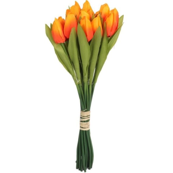 Sztuczny Bukiet 18 Pomarańczowych Tulipanów - Dekoracja o Wiarygodnym Wyglądzie