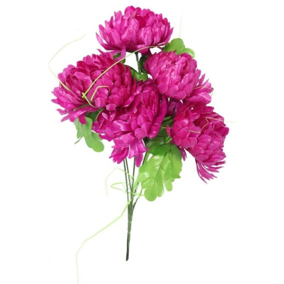Sztuczny Bukiet 7 Fioletowych Chryzantem z Trawką 40 cm - Dekoracja na Wszystkich Świętych