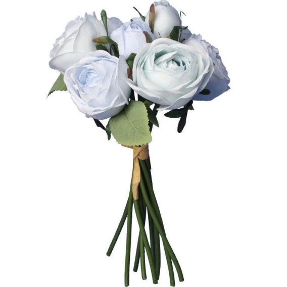Sztuczny Bukiet 9 Niebieskich Róż Wyglądających Jak Żywe - 28cm