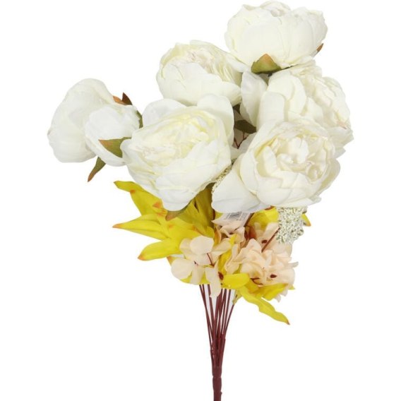 Sztuczny Bukiet Białych Piwonii z Dodatkami - 13 Gałązek, Wysokość 55 cm