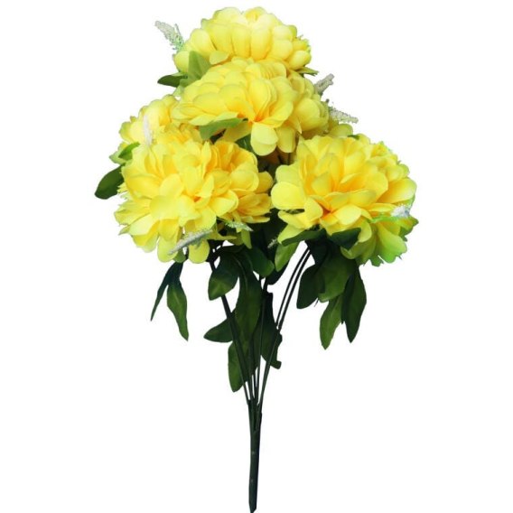 Sztuczny Bukiet Żółtych Chryzantem z Gipsówką - Dekoracja Cmentarna, Wysokość 54cm