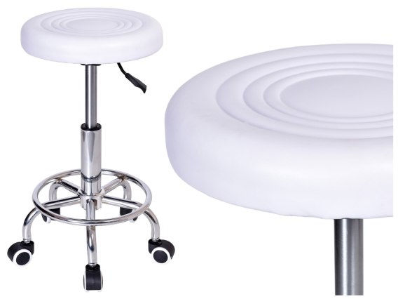 Taboret Monza to klasyczny stołek kosmetyczny/fryzjerski. Posiada wygodne tapicerowane siedzisko z ekoskóry z regulowaną wysokością oraz stabilną podstawę na kółkach. Dzięki temu łatwo go przemieszczać.