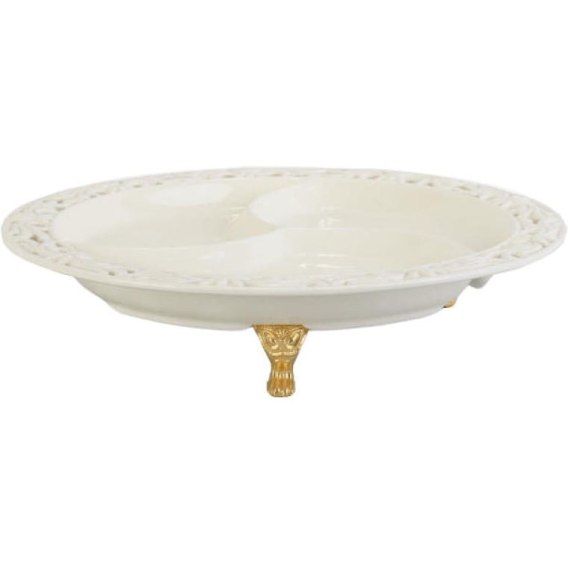 Talerz Ceramiczny z Przegrodami na Złotych Nóżkach 24 cm - Kolekcja Koronkowa