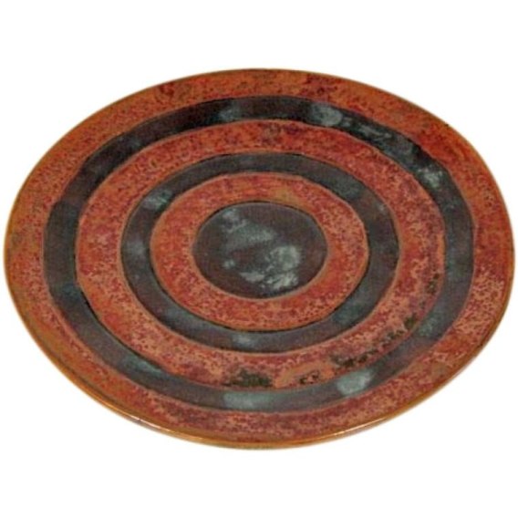 Talerz ceramiczny w pasy 21 cm z możliwością używania jako podstawka pod świeczki, kolor brązowy