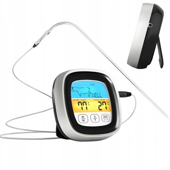 Termometr kuchenny cyfrowy RETOO z sondą do mięsa, grilla i piekarnika 250deg;C to precyzyjne narzędzie do kontroli temperatury przygotowywanych potraw. Wyposażony w czytelny, podświetlany ekran LCD, umożliwia dokładny pomiar temperatury oraz ustawienie alarmu czasu pieczenia. Dzięki 5 poziomom wysmażenia oraz funkcji wyboru jednostki deg;C/deg;F, zapewnia maksymalną kontrolę nad procesem gotowania mięsa, ryb czy innych dań.