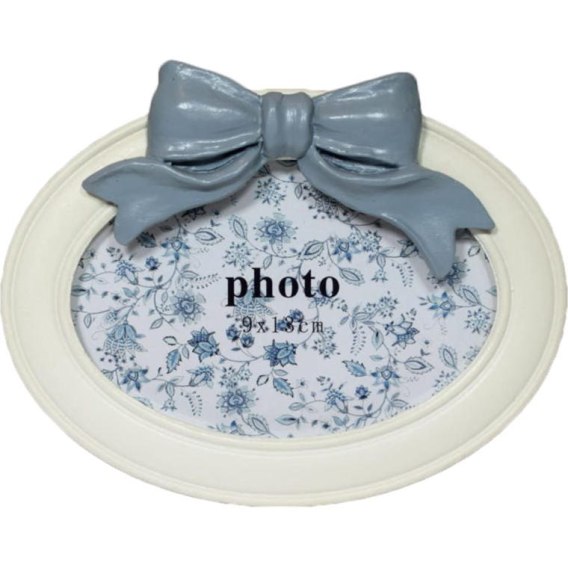 Urokliwa Biała Ramka w Kształcie Owalu Ozdobiona Kokardą