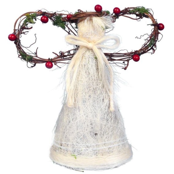 Uśmiechnięty Anioł Świąteczny z Jarzębiny i Sizalu 22 cm